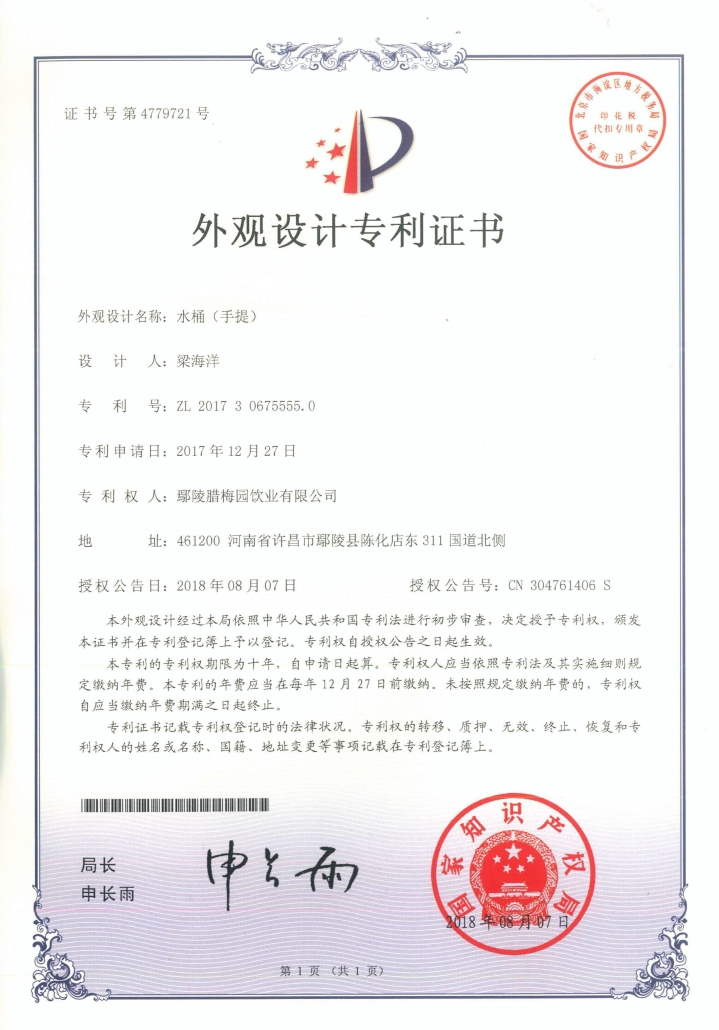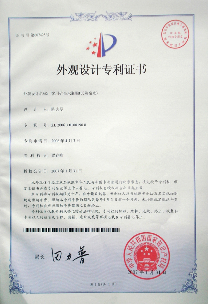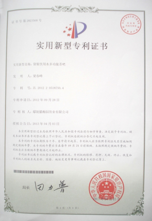 此外,2008年公司引进欧洲活水科技,携手奥地利自然科学家约翰·格兰特,推出第四代饮用水——“良田格兰特”,并于2010年向中国国家专利局正式申请《一种采用频率共振和内聚回旋生产活化水的方法及高频能量液》,该技术于2014年12月成功获得国家发明专利证书,实现了自主研发活水科技的迭代升级。