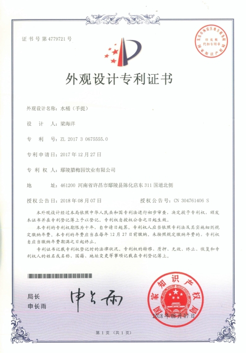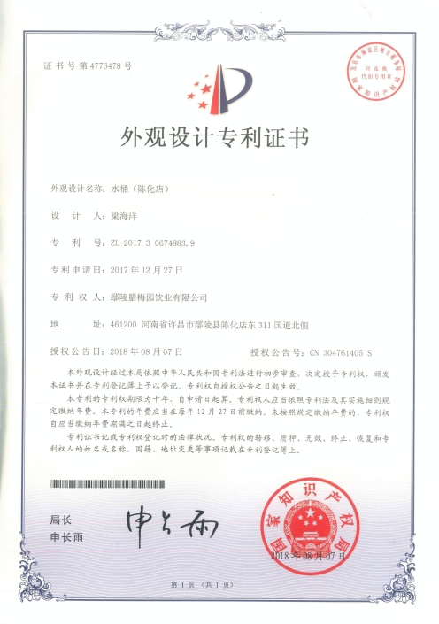 公司制水技术获得“中国发明专利”。鄢陵农业产业化龙头企业协会授予“理事会员”